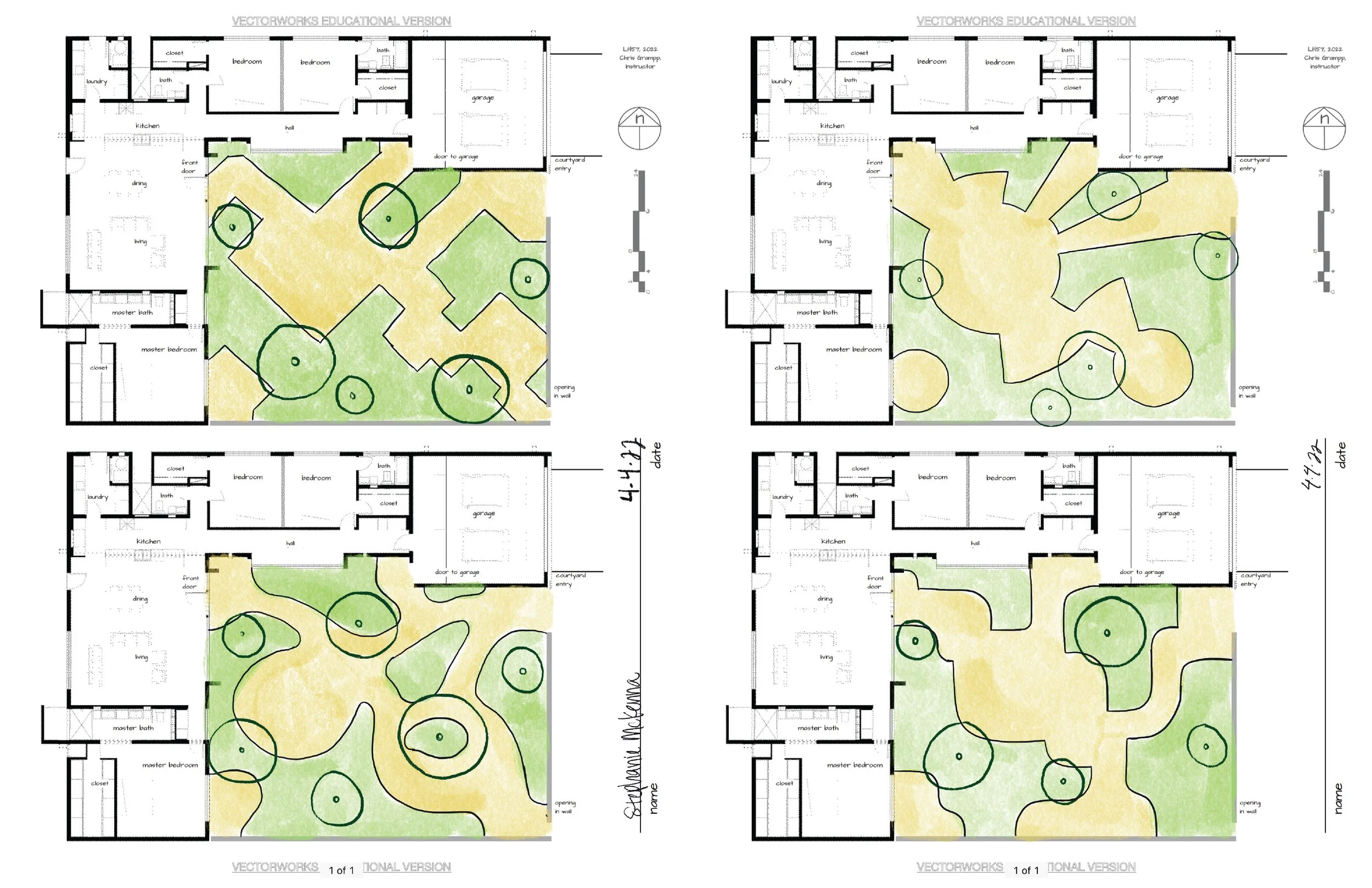 A selection of projects from a concept-heavy class focused on landscape design principles. We had the opportunity to play with plan-view and planometric designs for a modern abode in the southwest, explore paving pattern intersections for a courtyard at an art gallery, learn about the different ways trees can anchor a landscape, and design an experiential pathway through a 20-acre open space.