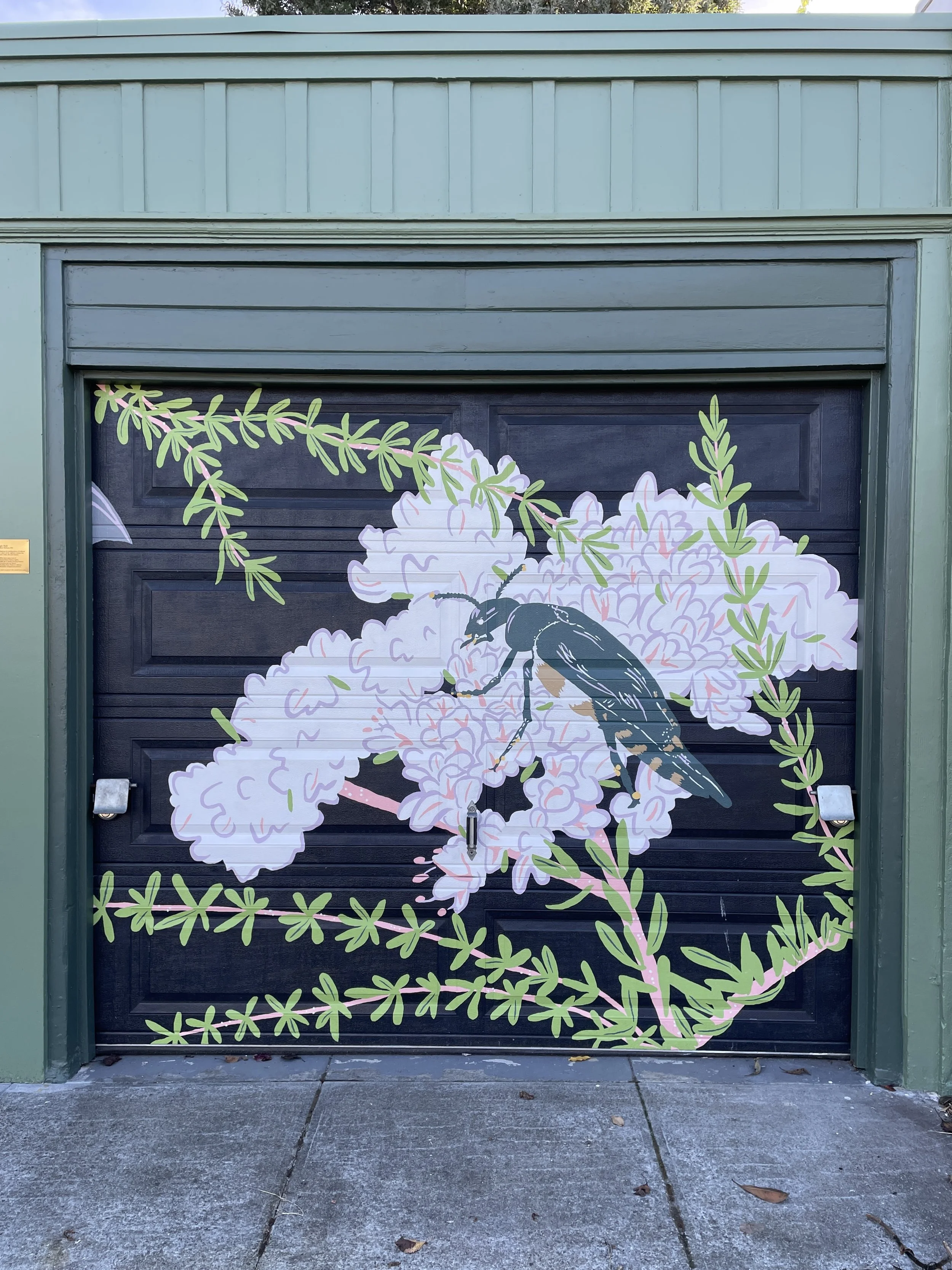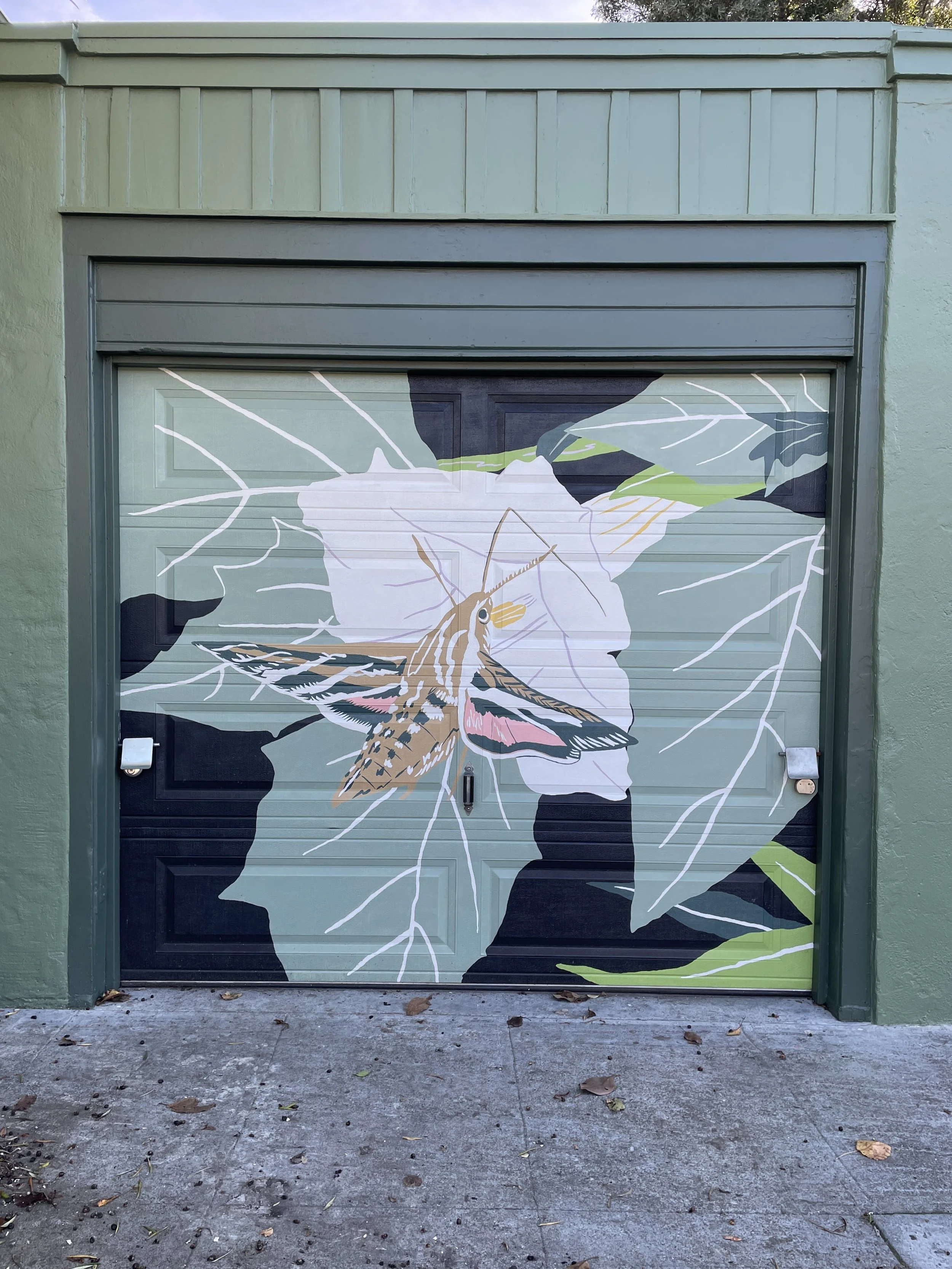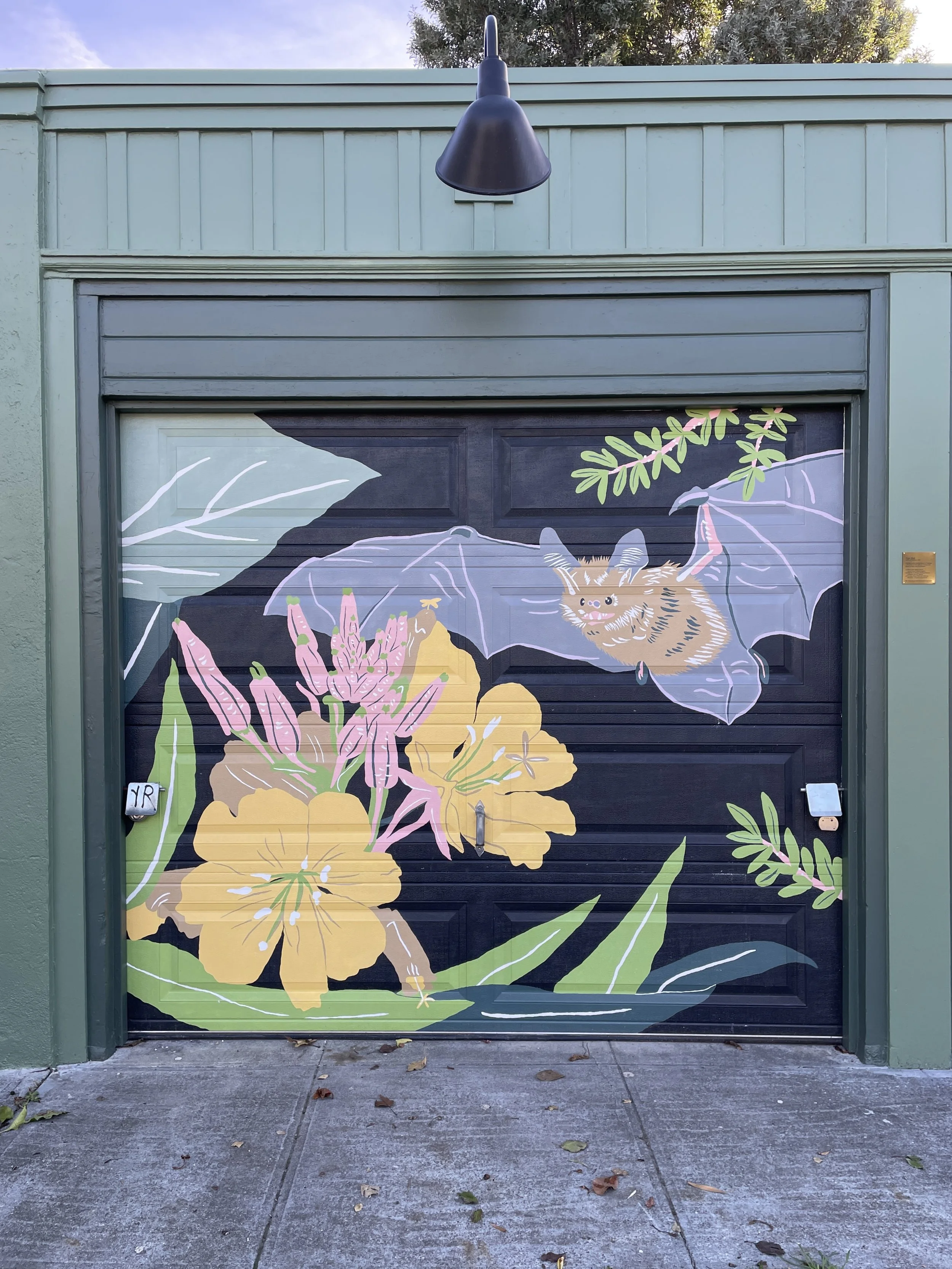 It took two months to complete the mural painting (mostly because I have a full time job, and could only paint in the early evenings and on the weekends). Every time a new color would go up I would get so excited to see the mural progressing - It was like working on a giant paint-by-number, but one that I had designed myself! And an unexpected delight of this project was all of the super positive neighbor interaction. Folks would stop their cars and compliment the mural as we drove by, and people walking down the street would stop and chat, curious and excited about what we were up to. I hope this piece continues to delight everyone who comes across it, and maybe also inspire them to plant native plants for nighttime pollinators in their own gardens.